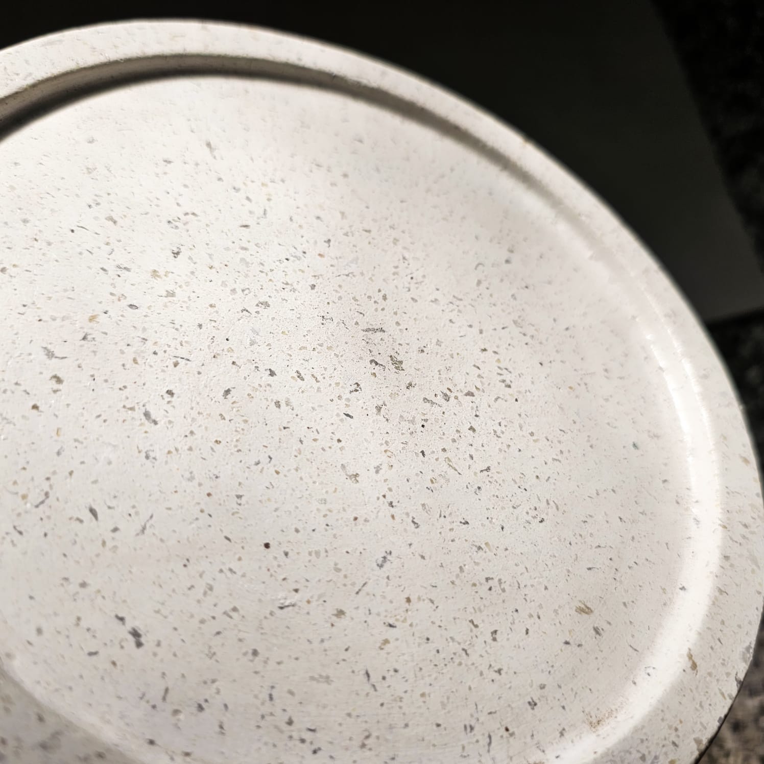 Mezcla cementicia con piedras naturales creada para fabricar objetos decorativos de interior y exterior con acabado terrazo.