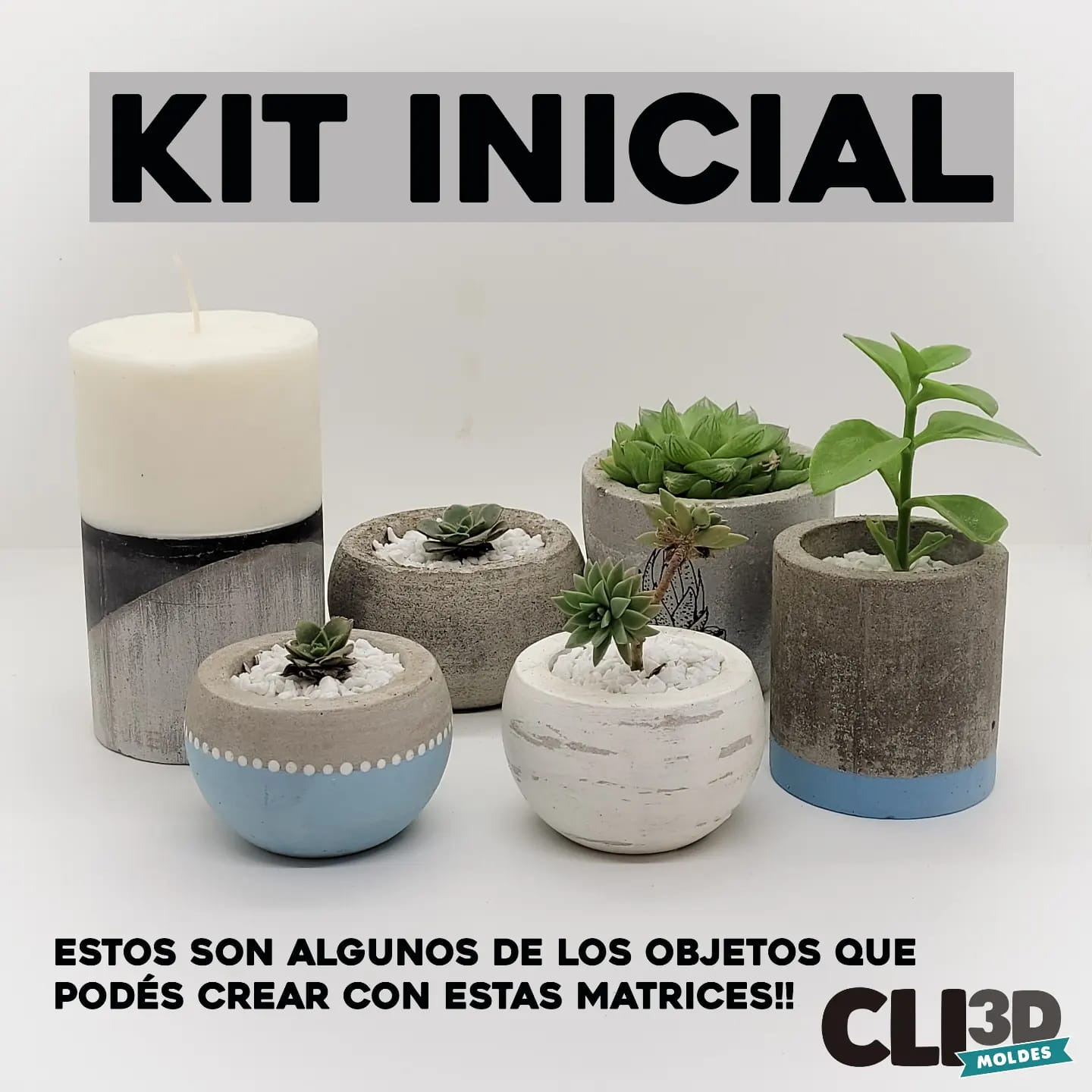 El KIT INICIAL está pensado para que empieces tu emprendimiento con una variedad de matrices que te van a permitir realizar distintos objetos y pequeñas macetas sin dificultades!